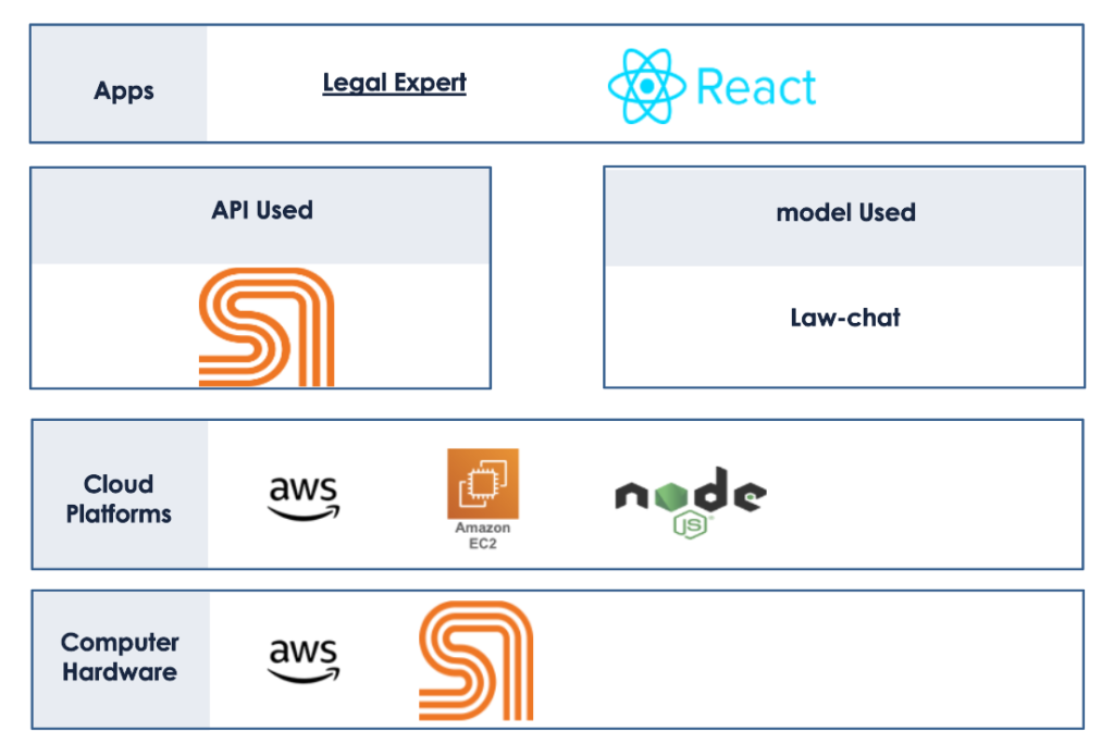The “Legal Expert” application epitomizes how cutting-edge technology can streamline and enhance the legal profession. By combining the power of React for a dynamic frontend, Node.js for a robust backend, SambaNova Systems for advanced AI, and AWS for reliable cloud deployment, we deliver a comprehensive solution tailored to meet the demands of modern legal practice.