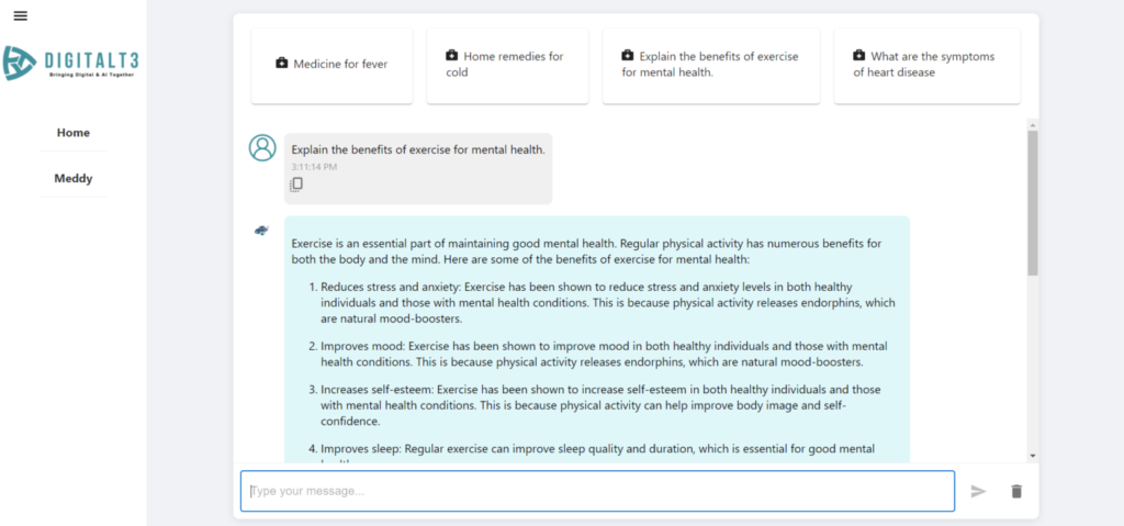 Creating a cutting-edge application like “Meddy” requires a thoughtful integration of various technologies. Here’s a detailed look into the architecture and components used to build this solution.