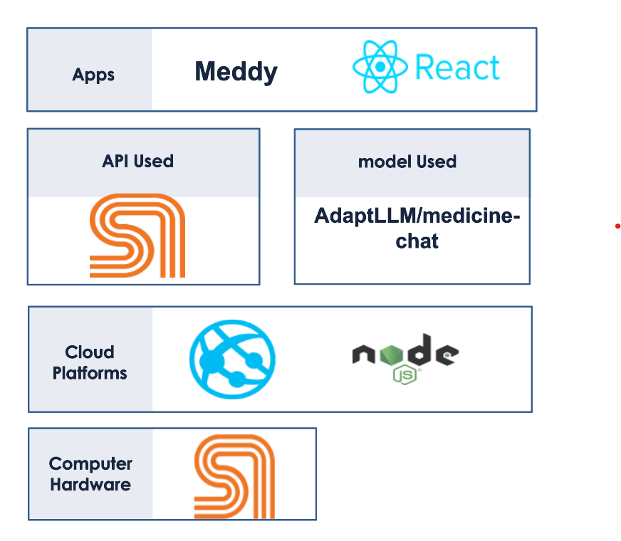 The “Meddy” application epitomizes how cutting-edge technology can streamline and enhance the legal profession. By combining the power of React for a dynamic frontend, Node.js for a robust backend, SambaNova Systems for advanced AI, and Azure for reliable cloud deployment, we deliver a comprehensive solution tailored to meet the demands of modern legal practice.
